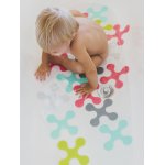 BathMat to sprytne połączenie maty do wanny z puzzlami. Mata składa się z 18 kolorowych elementów, które można swobodnie rozłożyć w wannie lub łączyć ze sobą tworząc antypoślizgową matę. Zwiększy to bezpieczeństwo zabawy dziecka w czasie kąpieli - zwłaszcza takiego, które samodzielnie siedzi lub w ferworze dobrej zabawy chce wstawać w czasie kąpieli. Poszczególne puzzle trzymają się powierzchni dzięki pięciu przyssawkom, to powoduje, że mata stabilnie przylega do podłoża wanny.